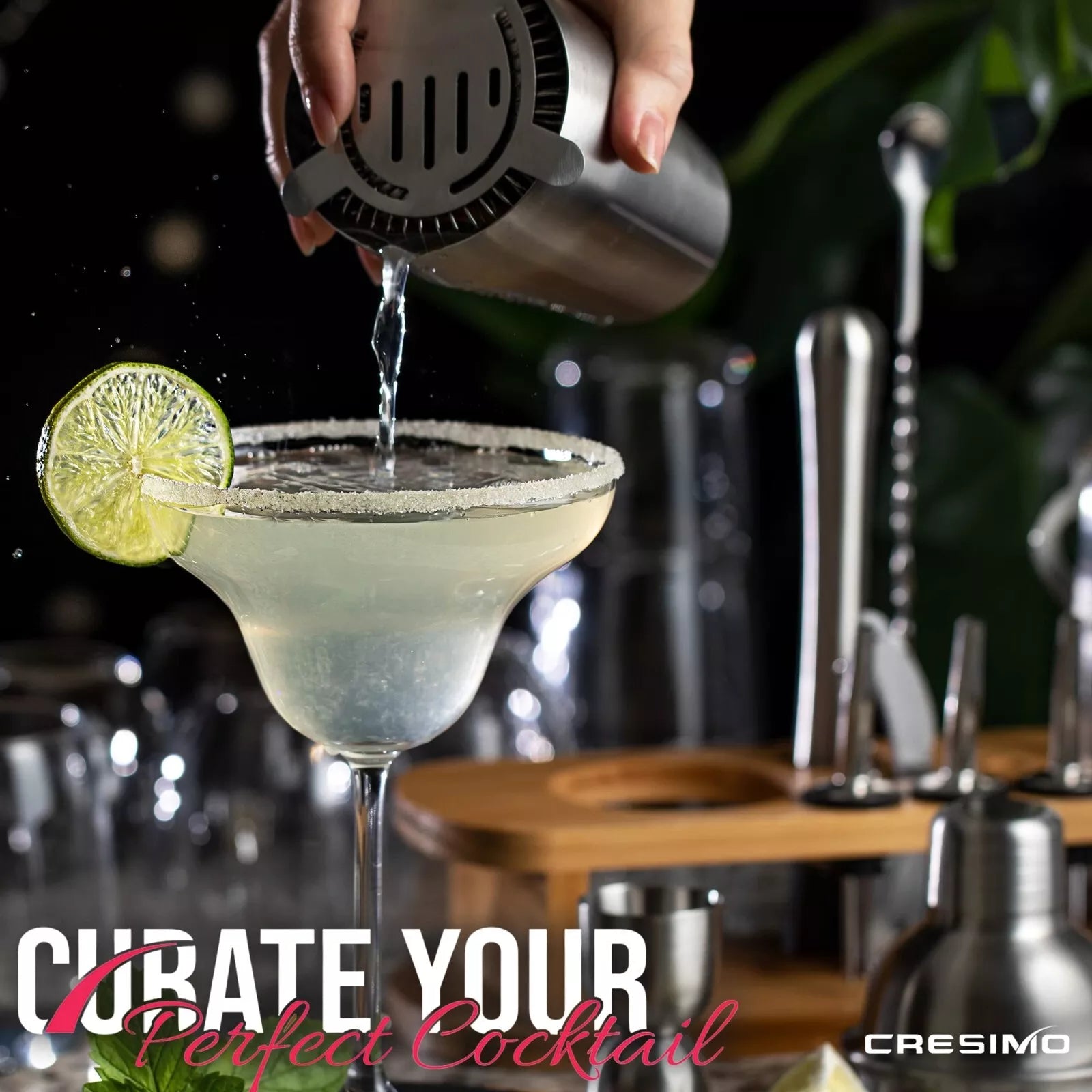 Bartending Kit for All Your Cocktail Mixing Needs. Make drinks with your very own 12 piece Bartender Set that is durable, premium quality, easy to use and built to last. Your bartender kit will improve the flavor and mixing experience of any cocktails you choose from. Primary Barware Features: 550 ML Stainless Steel Cocktail / Martini Shaker, Muddler and Bar Spoon, Comes with 1 and 1/2 oz. Jigger, Hawthorne Strainer, Ice Tongs, Stainless Steel Waiters Corkscrew, Stainless Steel Wine Opener, Natural Bamboo Stand For Your Complete Drink Shaker Set, Fold out Recipe Booklet with Cocktails and Mocktails for creating and mixing any drink of your choosing. This cocktail Martini Shaker is dishwasher safe. Primary Benefits: Create 4 - 6 drinks per each drink shaker. Or 6 - 10 shots. Great for cooling down any drink of your choosing. Can make any drink including mojitos, martinis, and other mixed drinks. It's versatile enough to be used as a cocktail boston shaker. Create precise measurements with the bonus jigger that comes with the cocktail alcohol shaker bar set. Our cocktail mixer will not rust or leak.